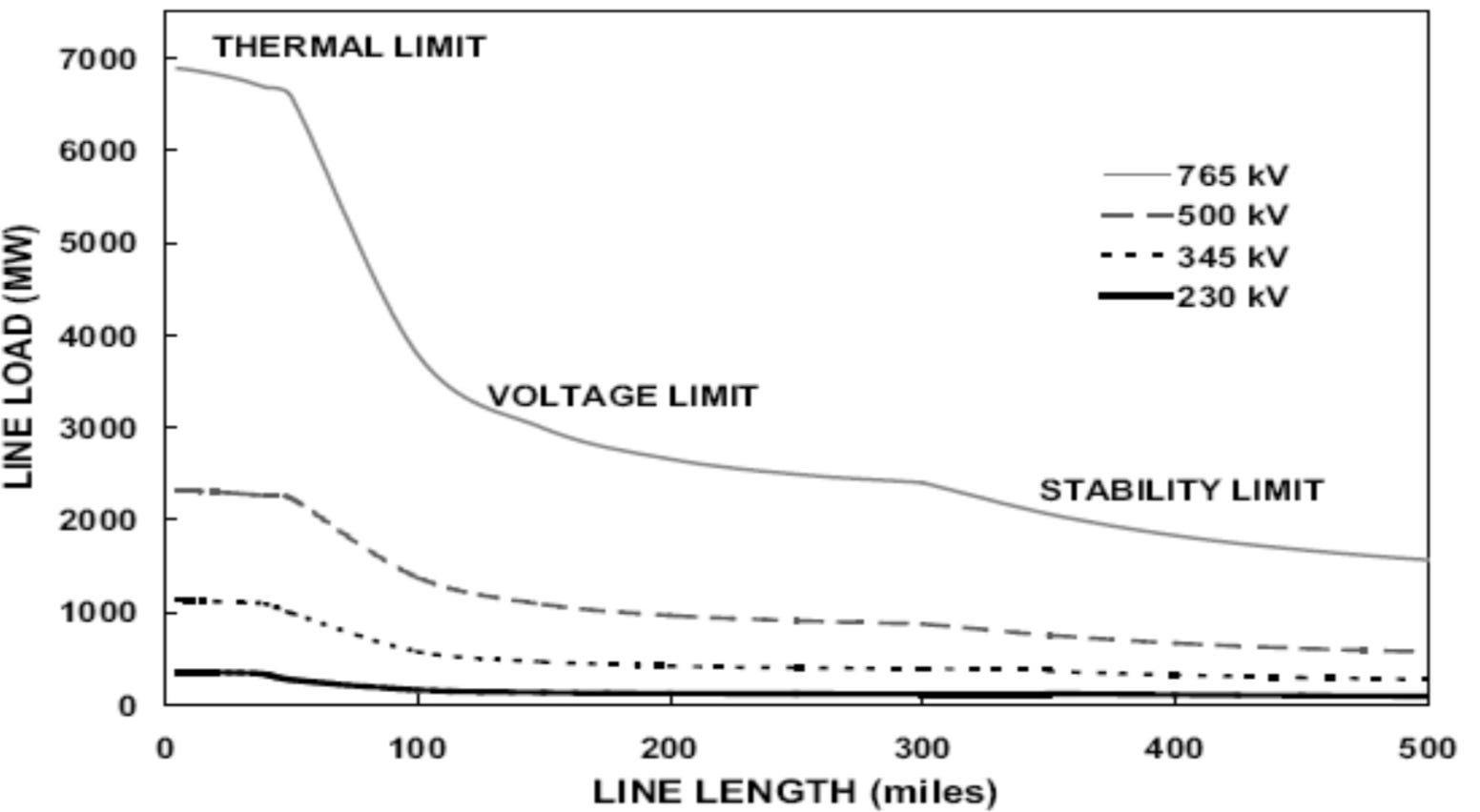 Stability limits (N-1 system security-related constraints): Lines operated at a safety margin to avoid transient voltage instabilities after ‘contingencies’ or failures of transmission or generators