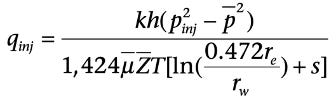 The expression for injectivity of a gas storage well can be inferred from the expressions for the productivity of a gas well, remembering that in storage, gas is injected into a closed system (unless there is a leak). So steady state is not applicable in injectivity evaluation of gas storage wells. Under pseudo steady state, the injectivity can be calculated by